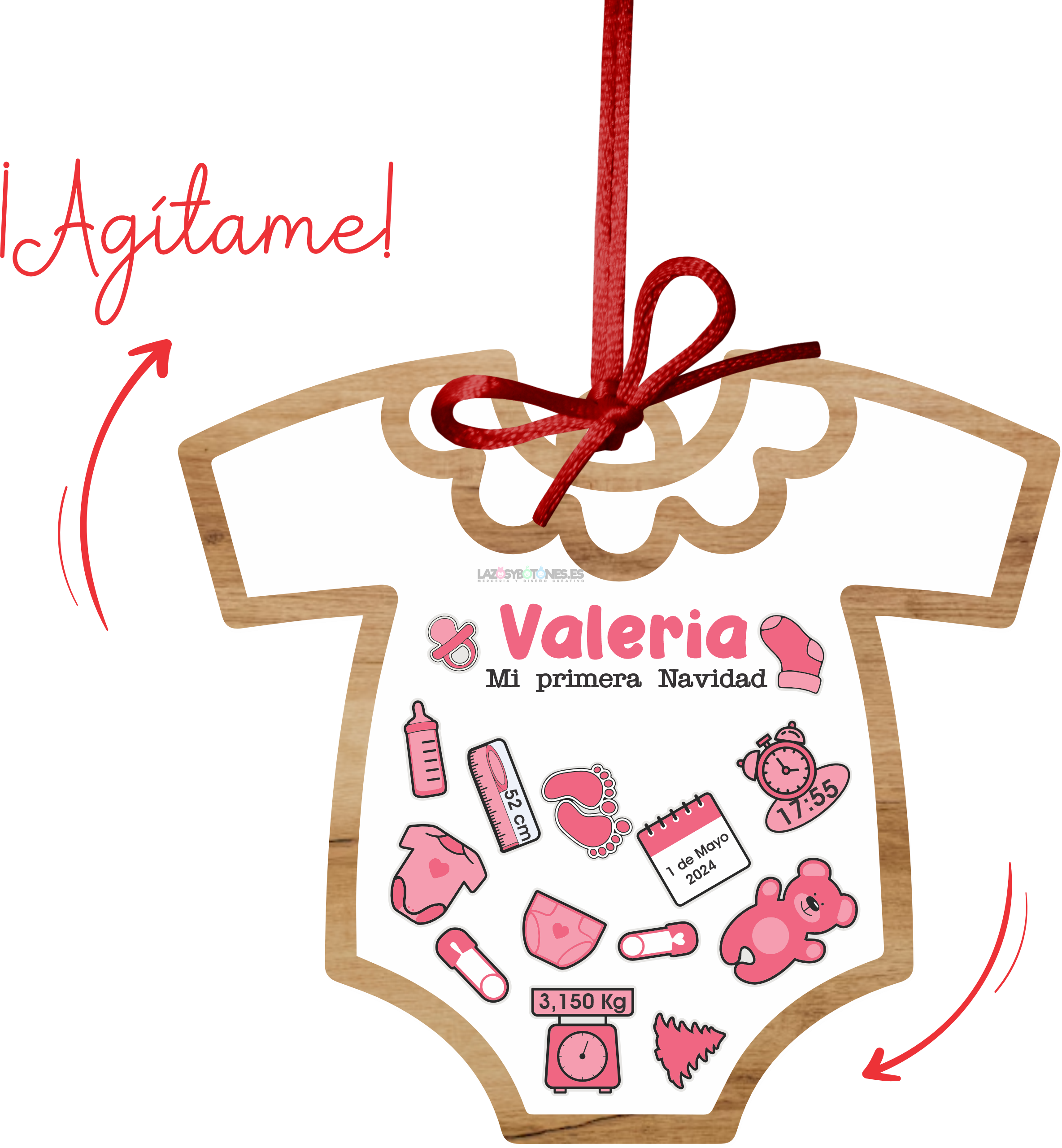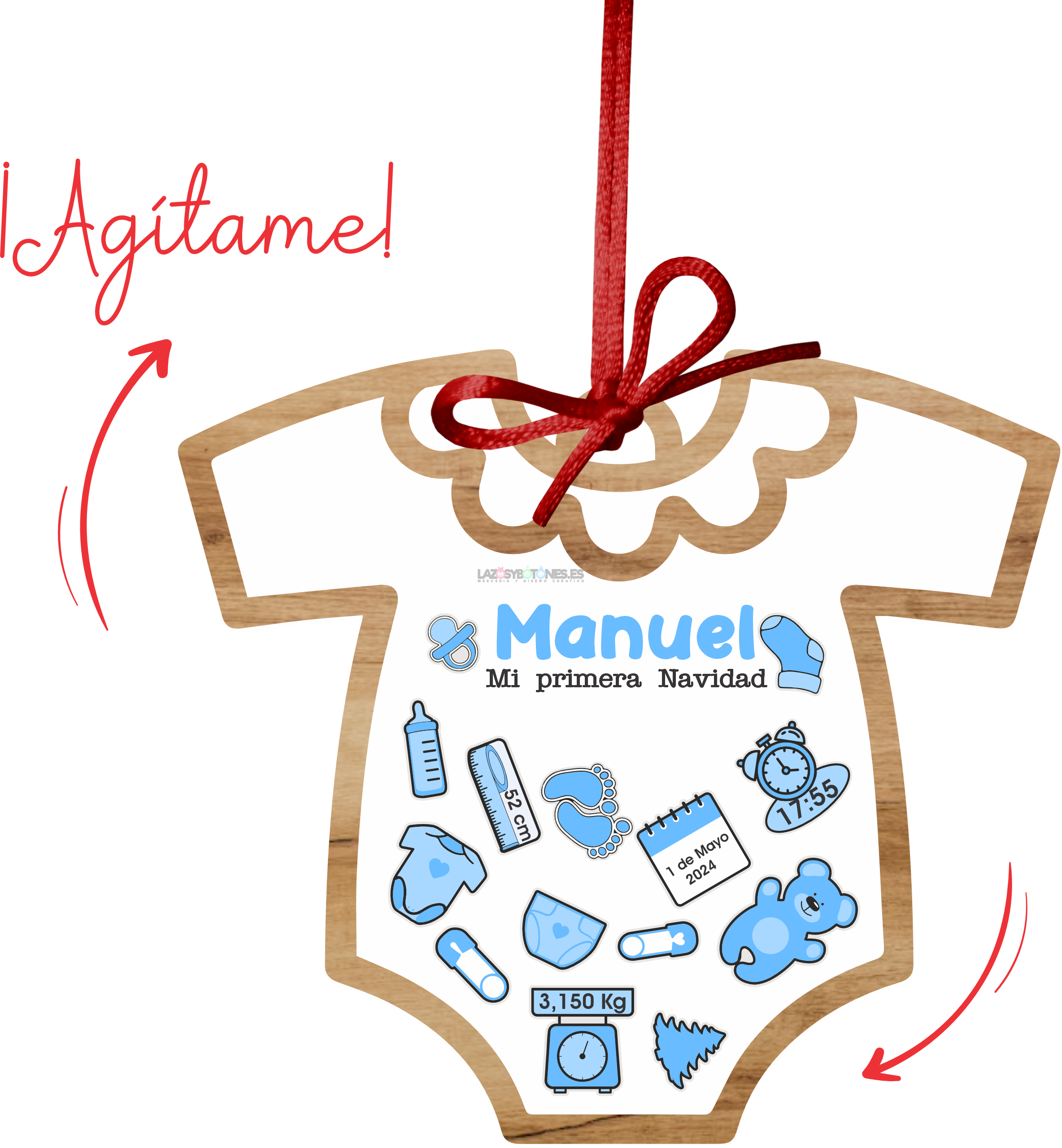 • Diseño en forma de body de bebé: Perfecto para recordar la primera Navidad del bebé.