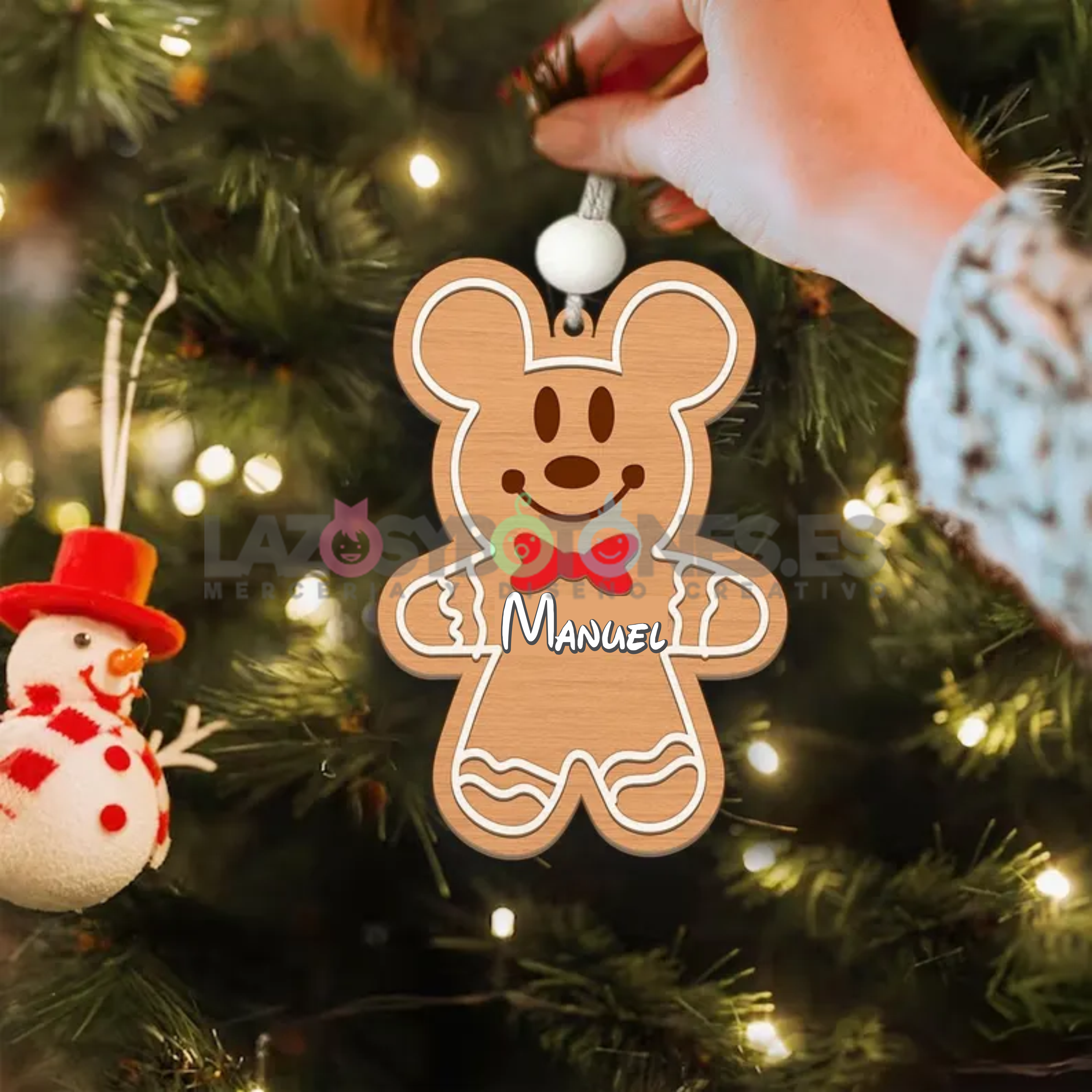 Este adorable adorno navideño con la silueta de galleta de jengibre de Mickey Mouse es el complemento perfecto para tu árbol de Navidad. Hecho con madera de Tierra de Pinares, de la mejor calidad, puedes personalizarlo con el nombre que desees, lo que lo convierte en un regalo ideal y único. ????