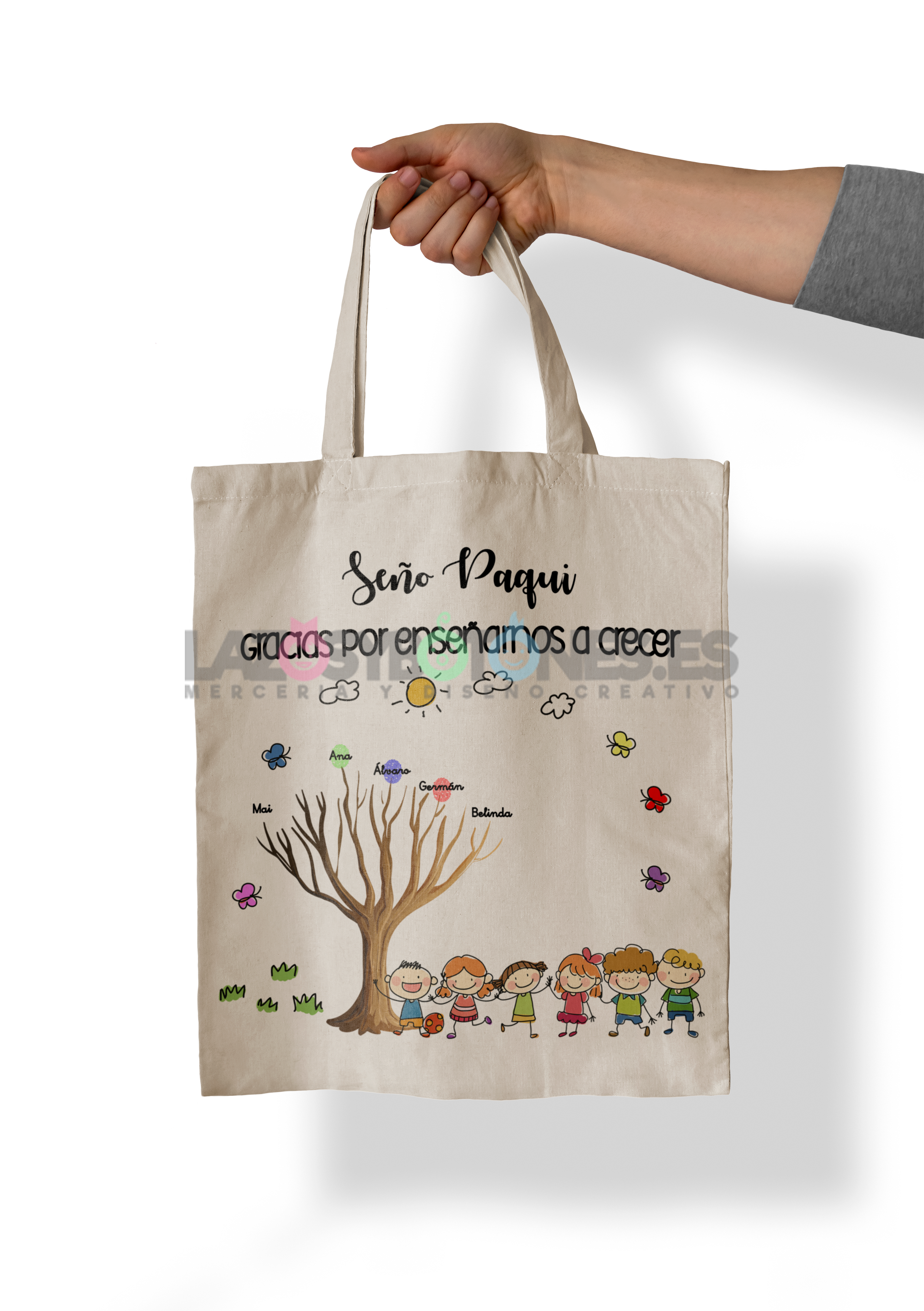 - Bolsa personalizada para profesores, con nombre del profesor y los alumnos.