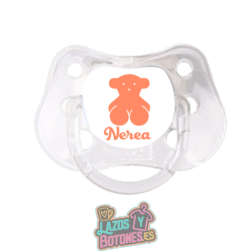 Este chupete personalizado con el osito coral más famoso de España destaca por su diseño actual y delicado en color coral, un tono cálido y alegre que aporta un toque diferente sin perder elegancia. Está inspirado en un estilo icónico muy reconocible, convirtiéndolo en uno de los modelos más especiales de la colección.