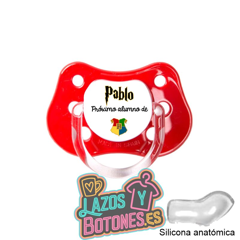 Si tu bebé es un futuro aprendiz de magia, este chupete personalizado es el complemento ideal para mostrar su destino mágico. Con un diseño inspirado en la saga más mágica de todos los tiempos, este chupete rojo incluye el texto "Próximo alumno de" junto con el escudo de la famosa escuela de magia y la posibilidad de personalizarlo con el nombre del bebé.