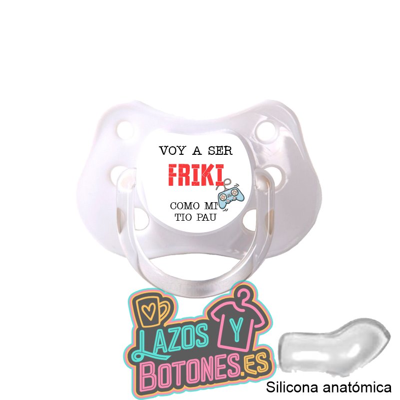 Si el tío Pau es el más friki de la familia, este chupete "Voy a Ser Friki como mi Tío Pau" es la manera perfecta de asegurarse de que el bebé siga su legado. Con un diseño original y divertido en color blanco, este chupete es ideal para los pequeños que han heredado la pasión geek por los videojuegos, el cine y la cultura pop.