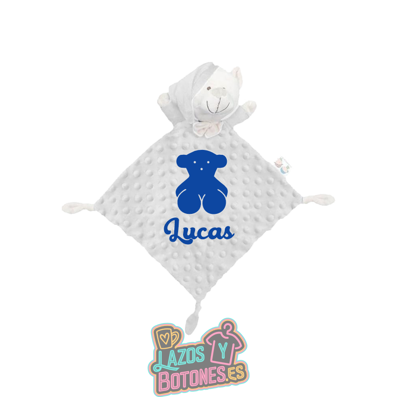 Está confeccionado en tejido tipo manta burbujas con acabado aterciopelado, ligero y muy agradable al tacto. Es perfecto como doudou, mantita de apego o trapito de dormir, ideal para la cuna, el carrito o los momentos de descanso. Combina a la perfección con nuestras mantas bordadas para bebé.