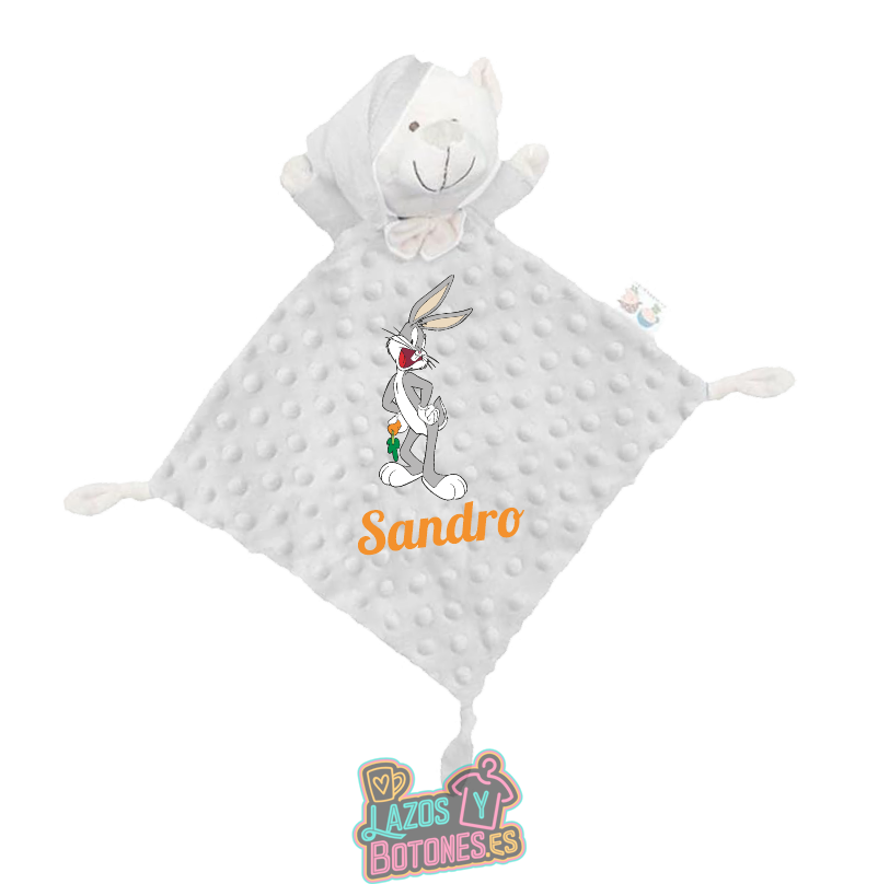 El Doudou Personalizado Mod. Bugs Bunny es una mantita de apego divertida y original inspirada en uno de los personajes más icónicos y carismáticos de la animación clásica. Su diseño alegre y reconocible lo convierte en una opción ideal para quienes buscan un regalo diferente, con un toque simpático y atemporal.