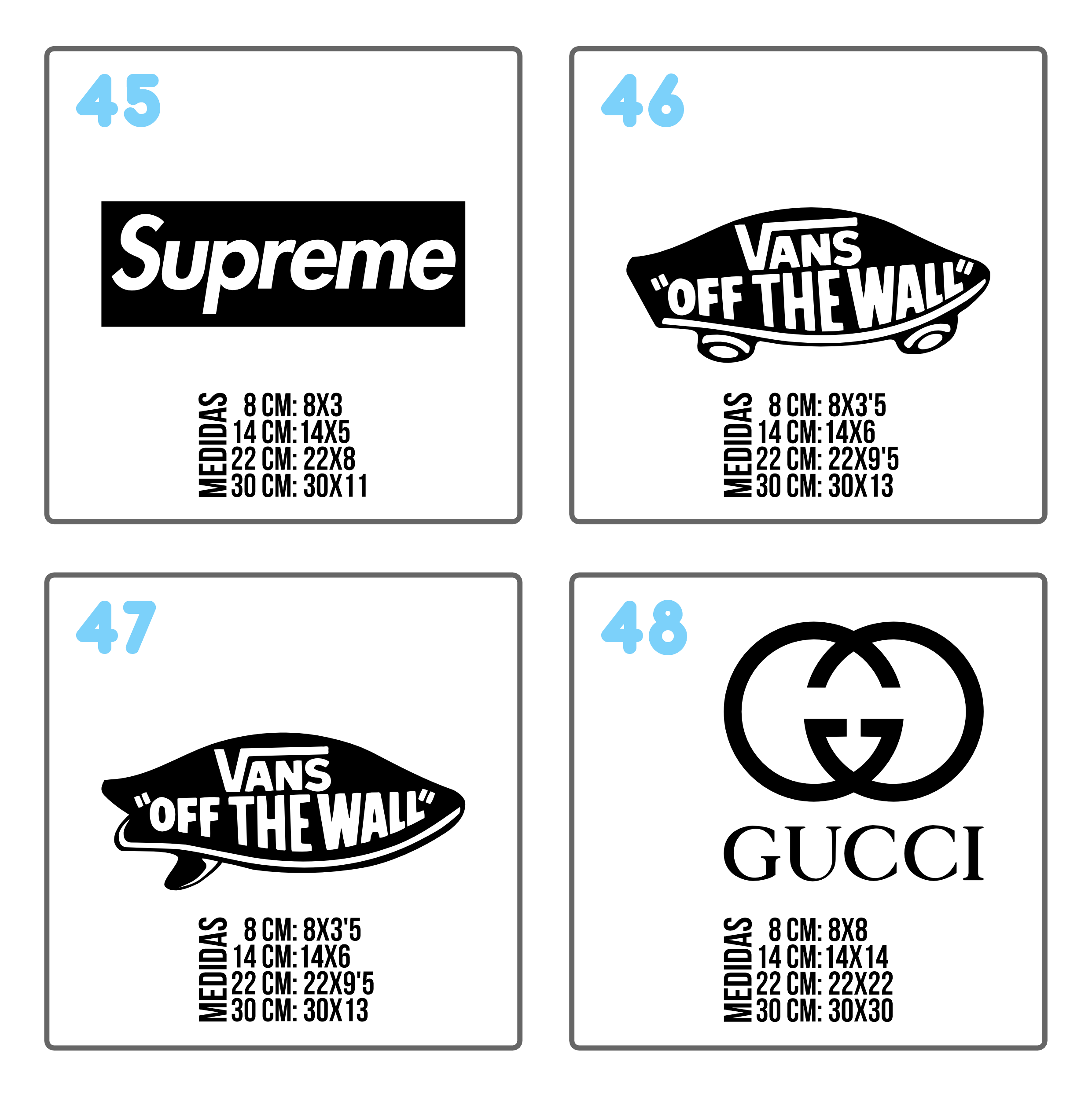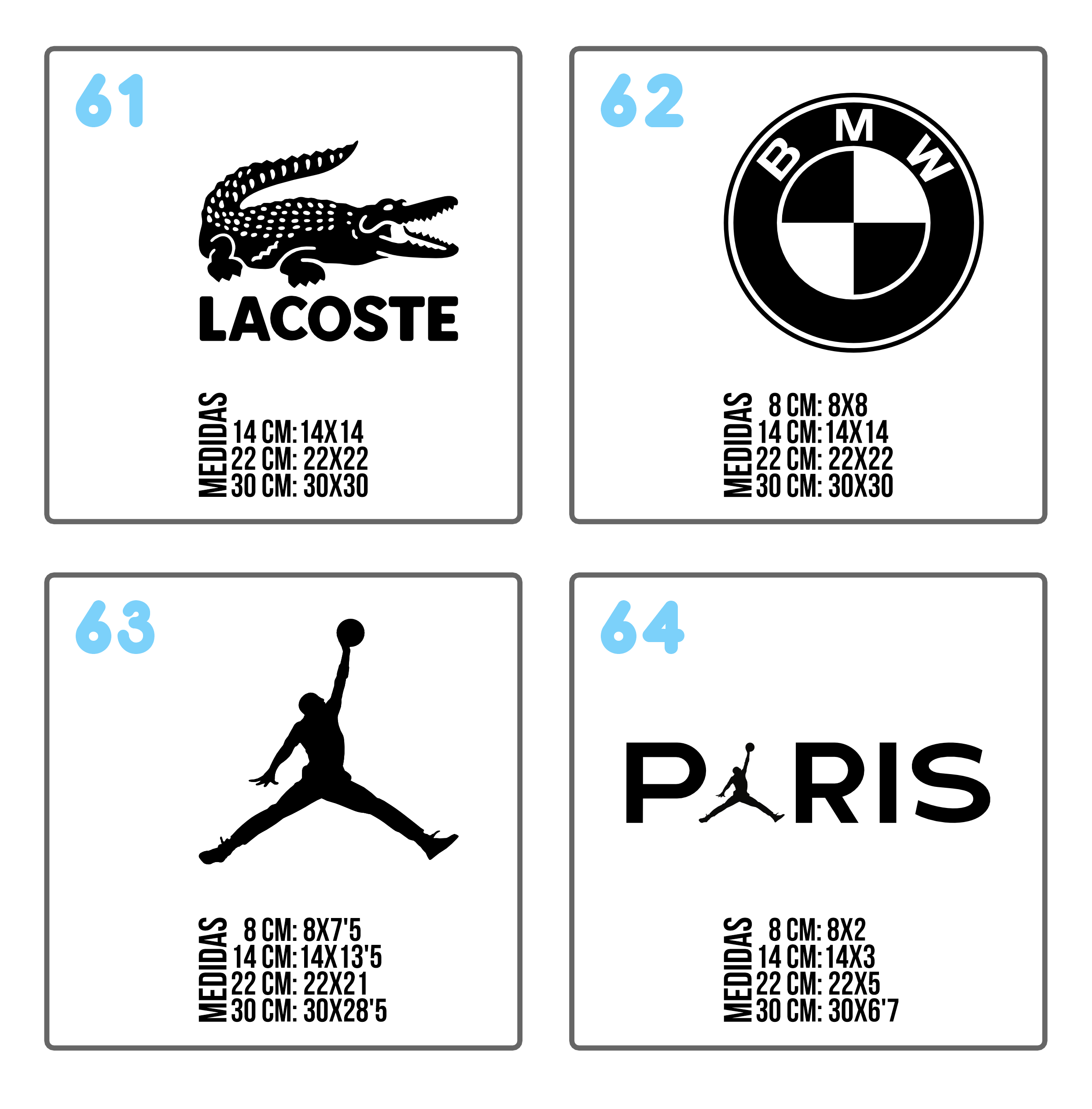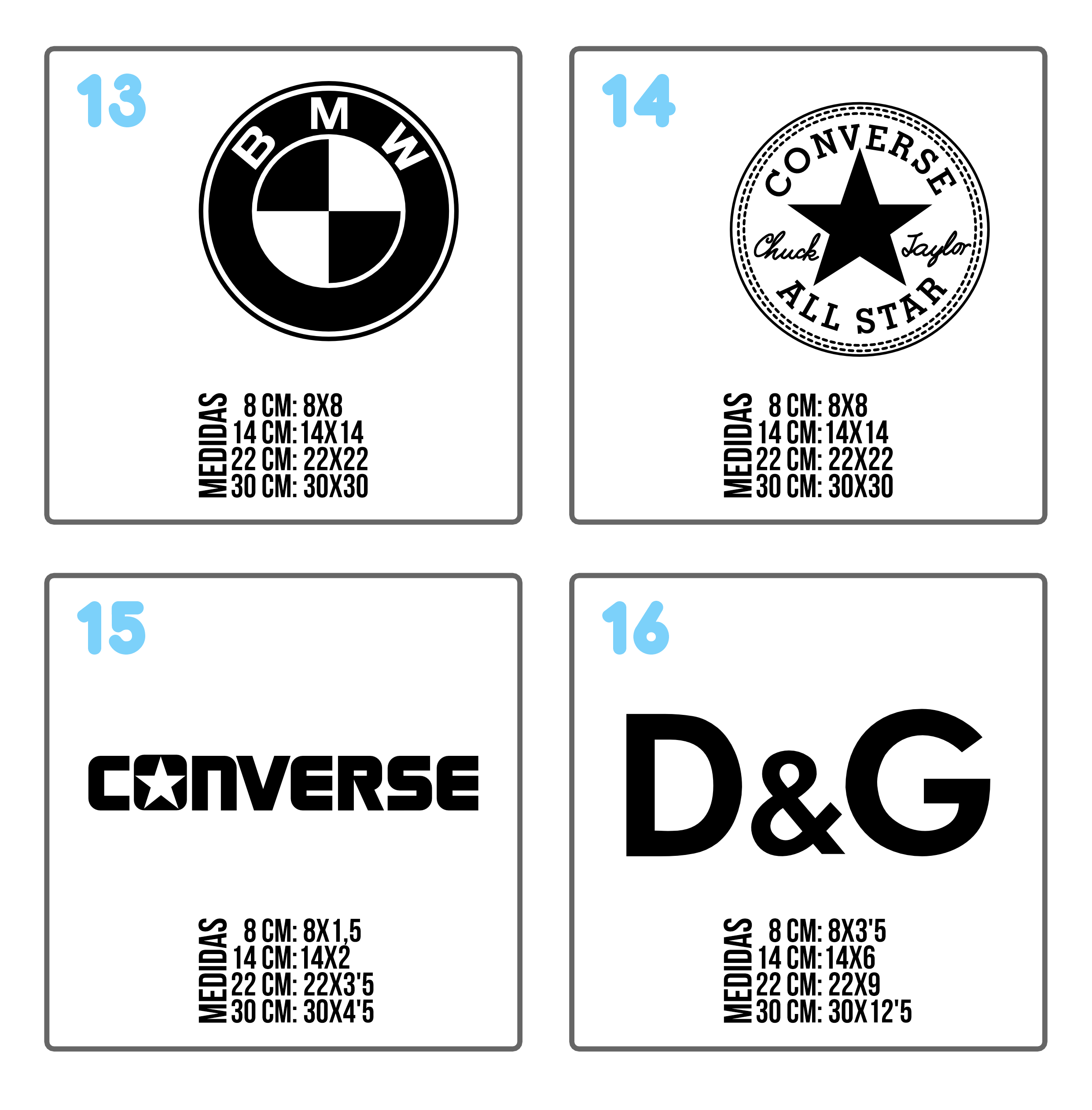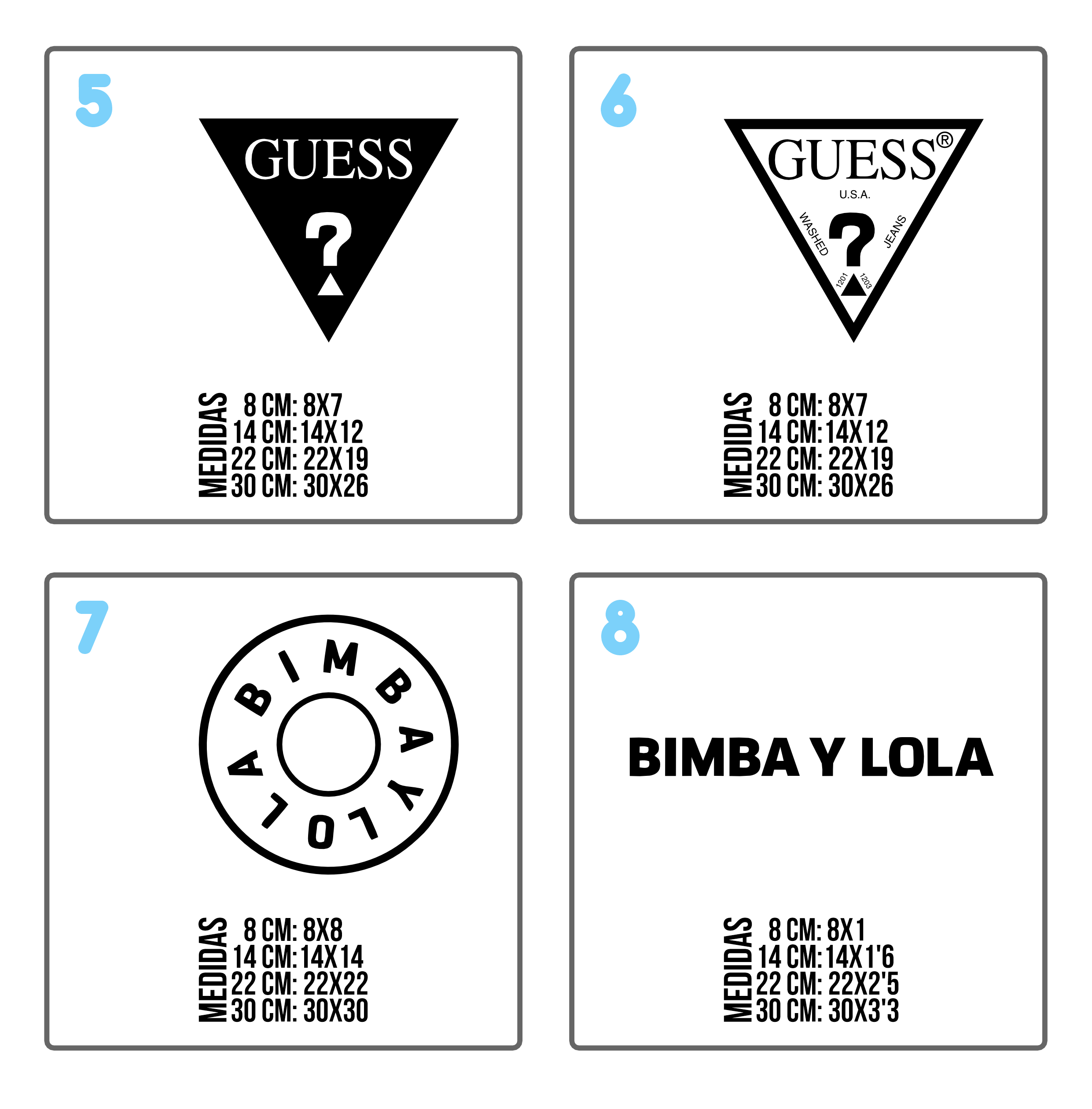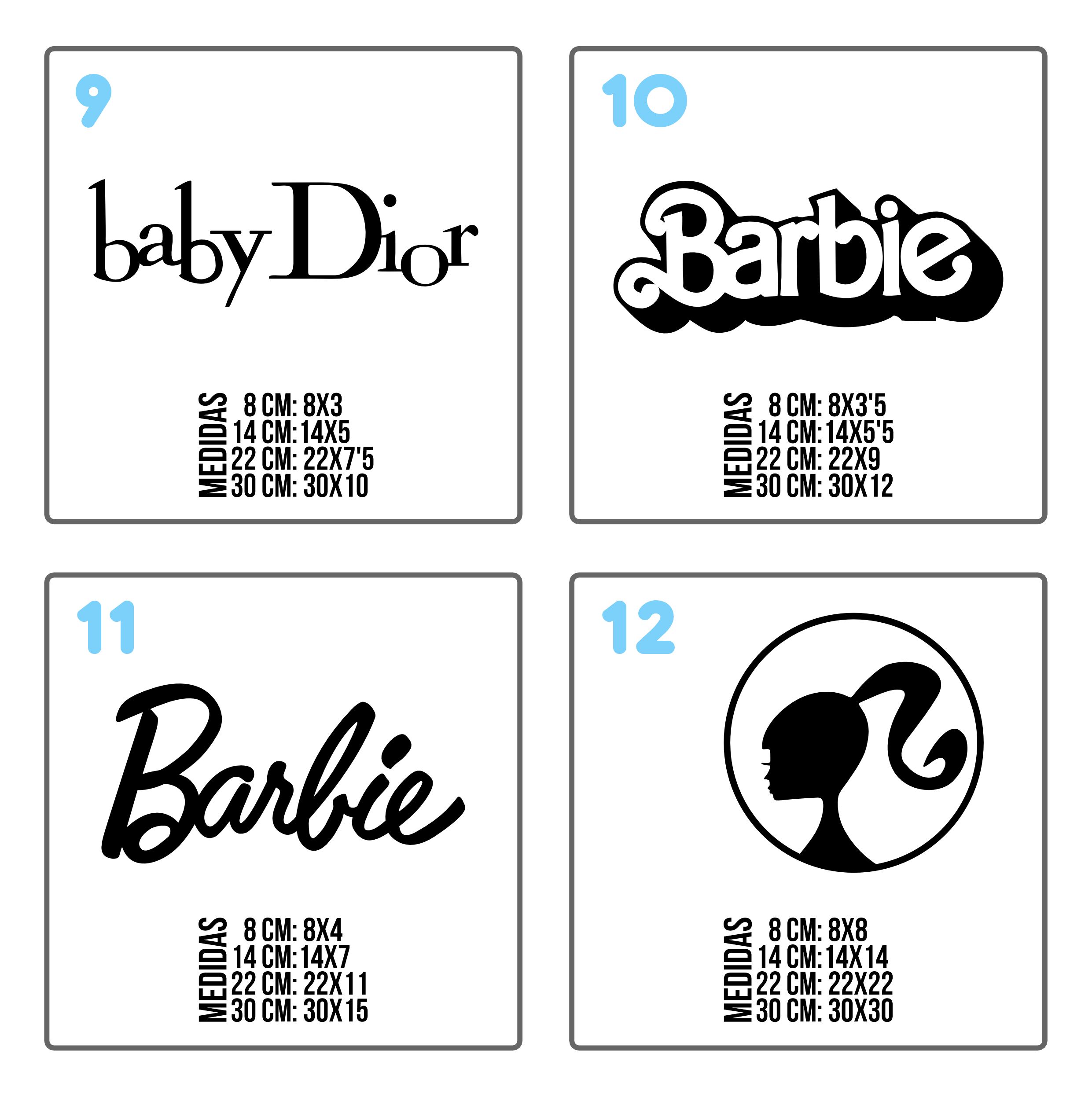 • Hay diseños que no hacemos de la medida de 8 cm. No ponemos su medida en el catálogo.