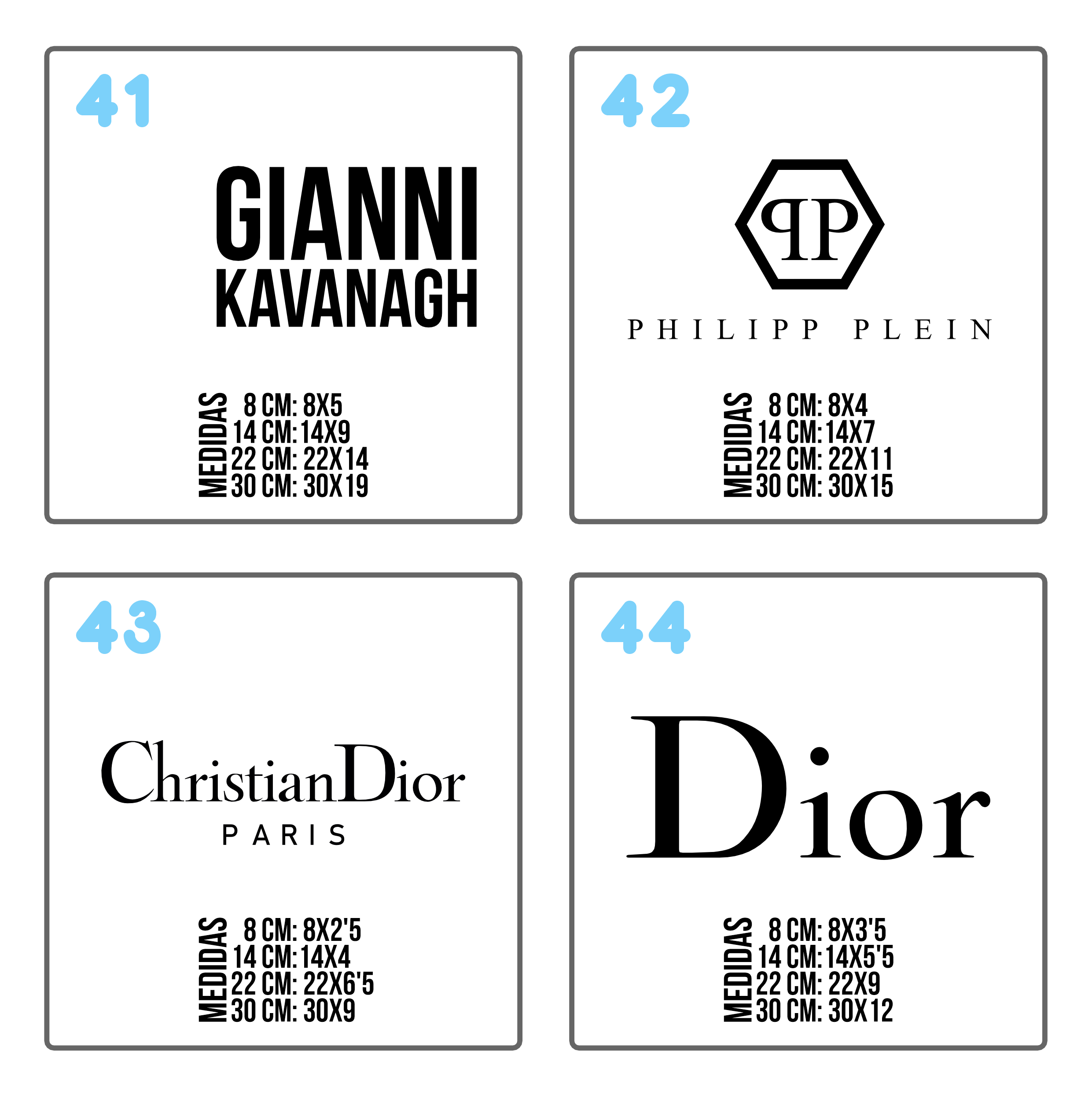 • Para seleccionar la medida de 2x4cm solo se podrá en diseños muy simple. Es un tamaño que permite demasiado detalle.