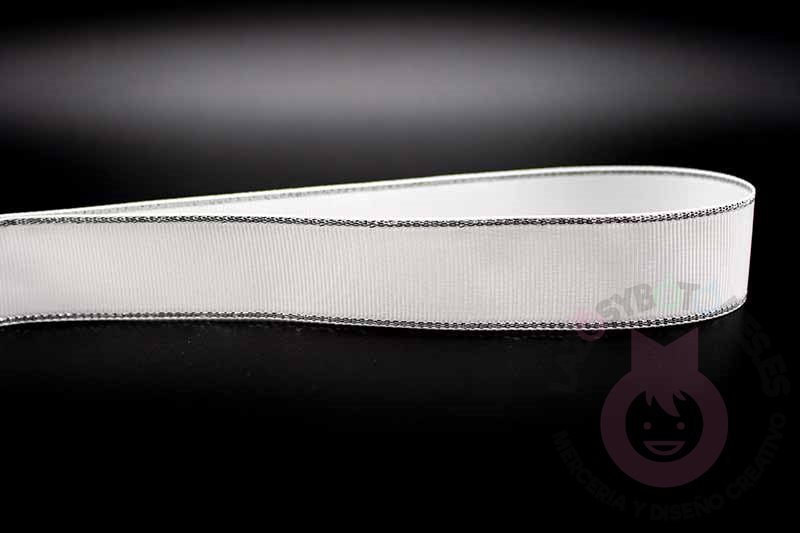 Cinta grosgrain HILO PLATEADO 25mm - Blanco