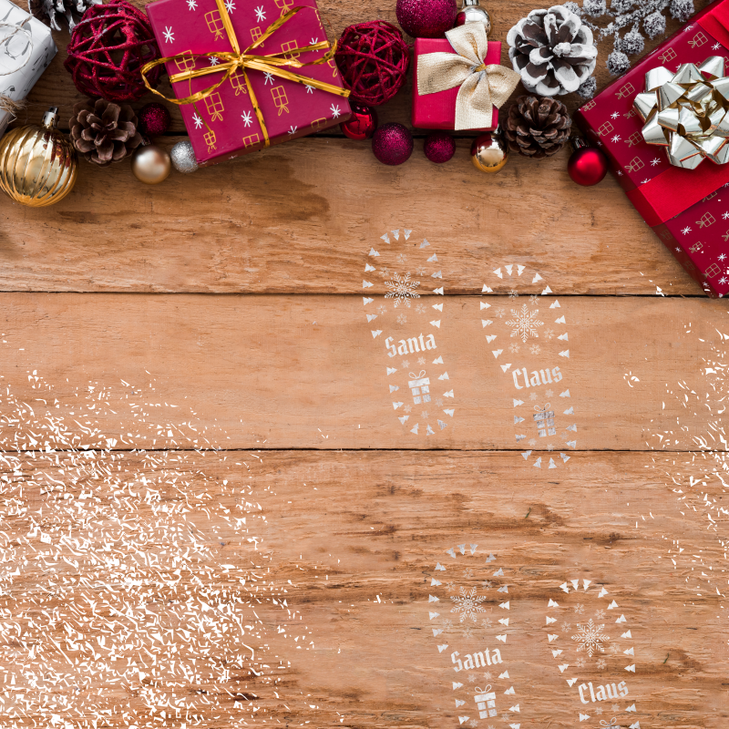 Plantillas de madera para recrear las huellas de Santa Claus y llenar el hogar de ilusión en Nochebuena.
