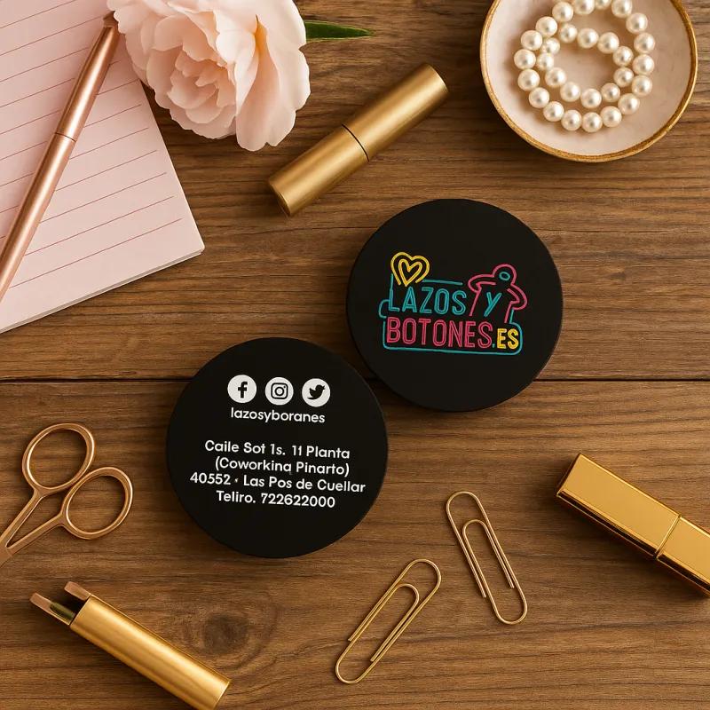 En Lazos y Botones, creamos cada tarjeta pensando en tu marca. El laminado mate realza los colores con un efecto sobrio y profesional, ideal para quienes buscan una estética minimalista y de alta gama.